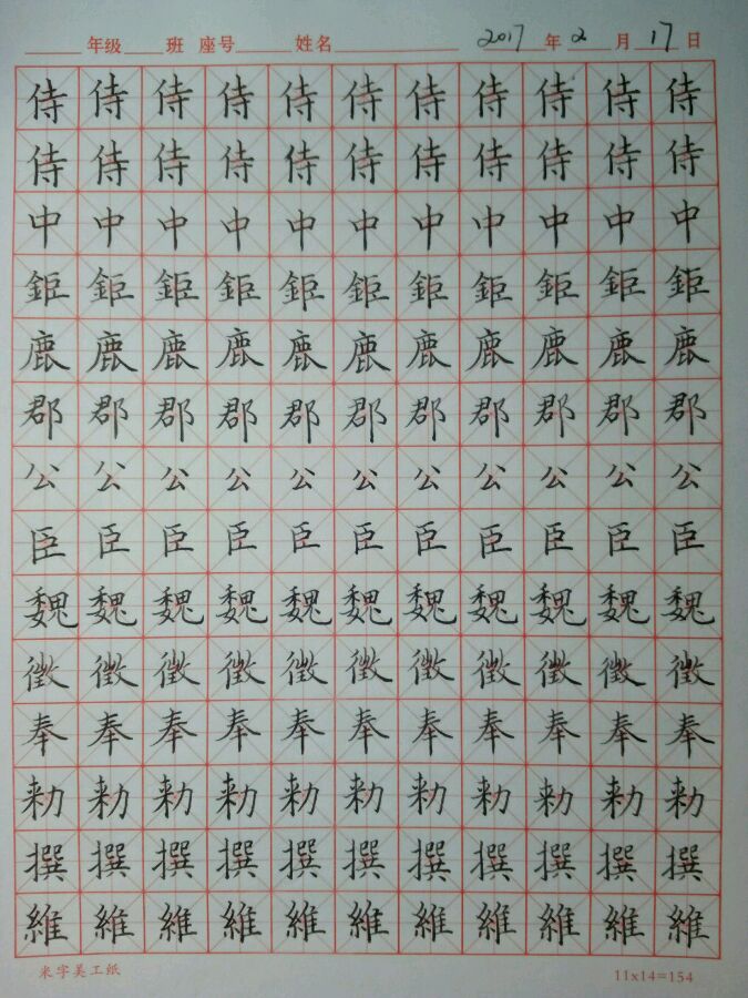 2月15日作业。今天开始精临,成字的戈钩真难写