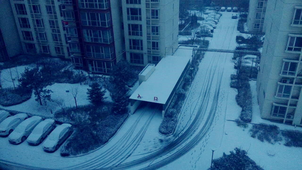长治7点钟的雪,天蒙蒙亮,下雪路滑,小心行驶