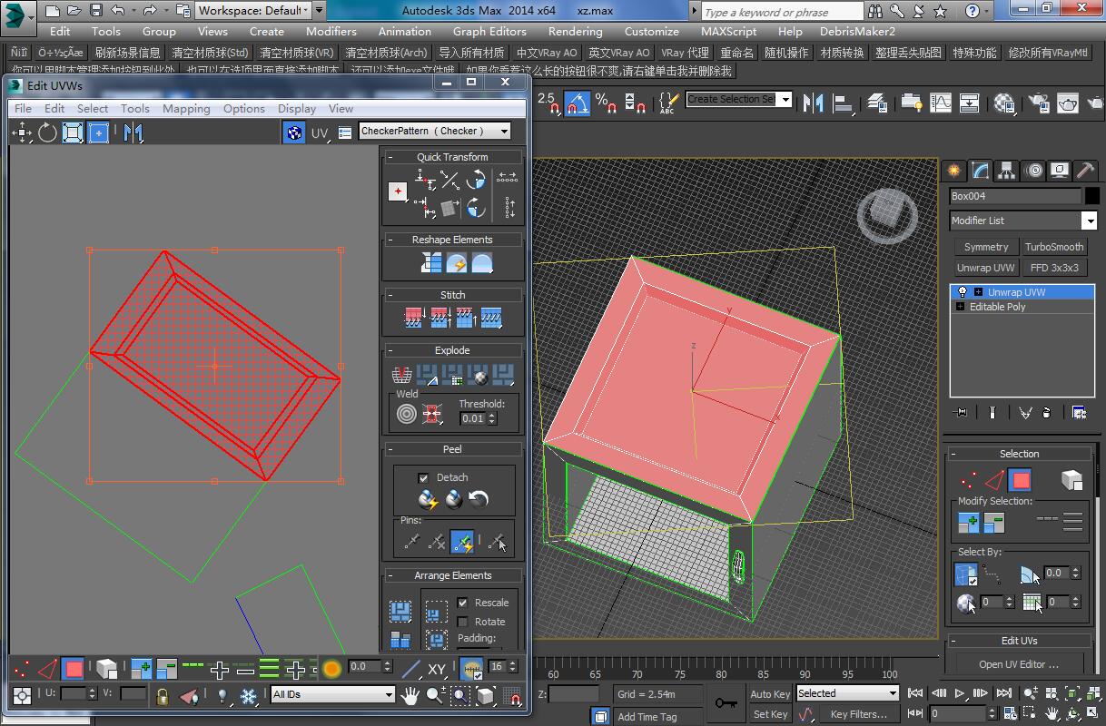 做一个小金属箱子,分UV。这个面应该是个正方形的,用了polygon angles展开就变成长方形的了,试了很久都没办法,求大神帮忙!谢谢了