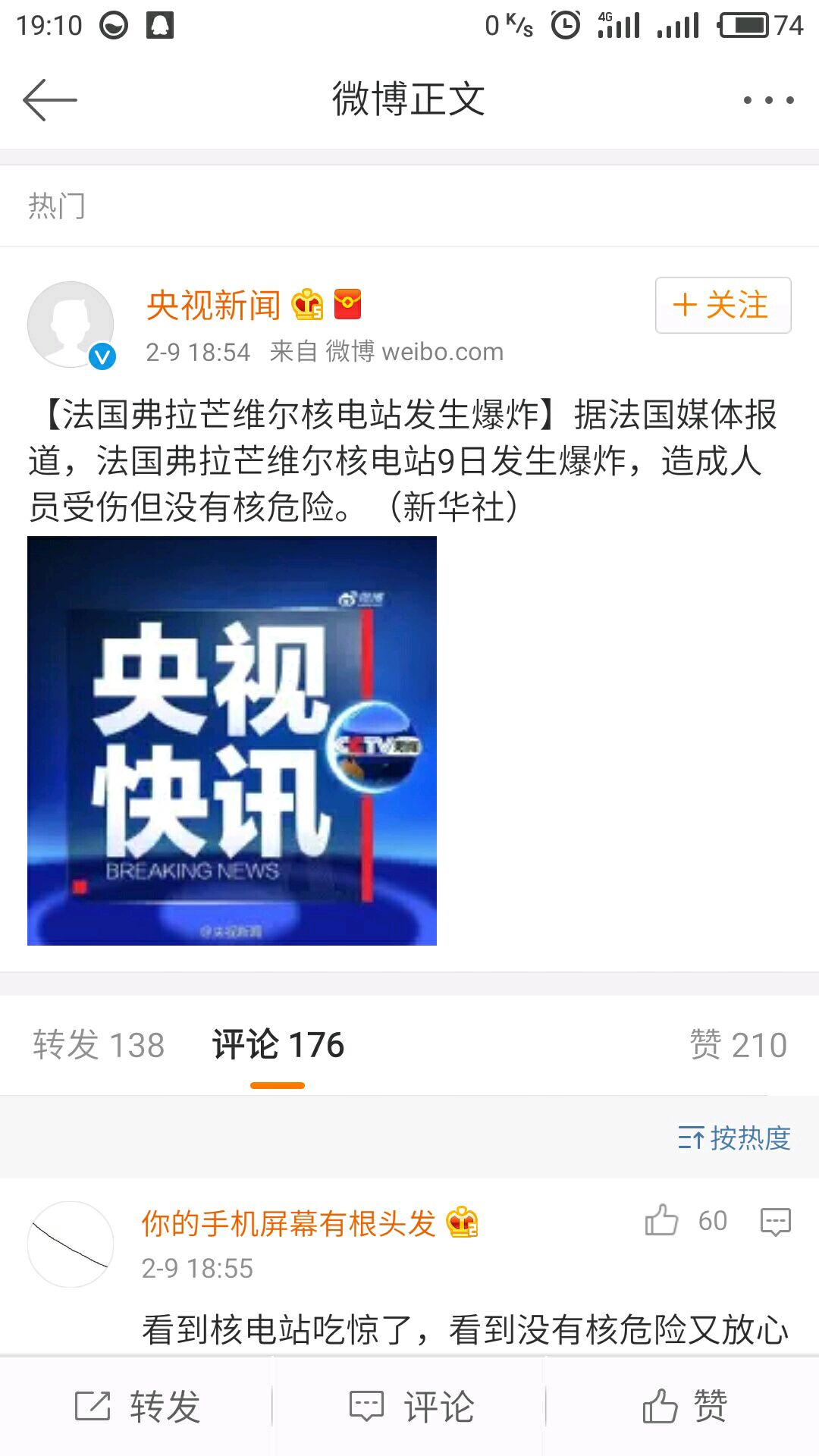 [cp]【法国弗拉芒维尔核电站发生爆炸】据法国媒体报道,法国弗拉芒维尔核电站9日发生爆炸,造成人员受伤但没有核危险。(新华社) [/cp]