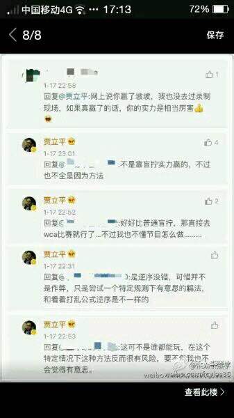 这些话是他本人回复的,当时恰好看到,看完后觉得有人能如此厚颜无耻也是厉害,估计他很早就知道世界第一要来,开始谋划怎么作弊了,还有那个魔方代表感觉非常不好相处一人,拉着脸给谁看啊,还有这季对名人堂一群人除了孙小朋友和王鹰豪、王峰外基本都路人了,所谓的大神们给我一种说不出的感觉