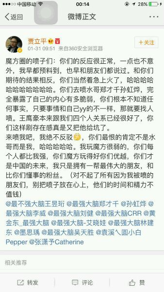 说那么多好话有意义?贾立平你家亲戚?再怎么洗,也改变不了他丑陋的嘴脸,还有王昱珩,郑才千,居然是一路货色