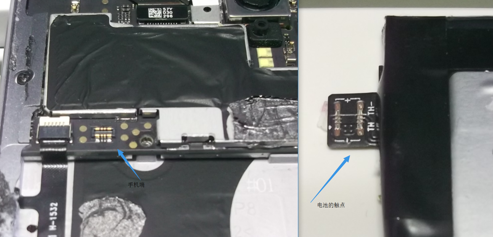 左边是机身上的电池触点,右边是电池本身的触点,到底是哪部分坏了啊