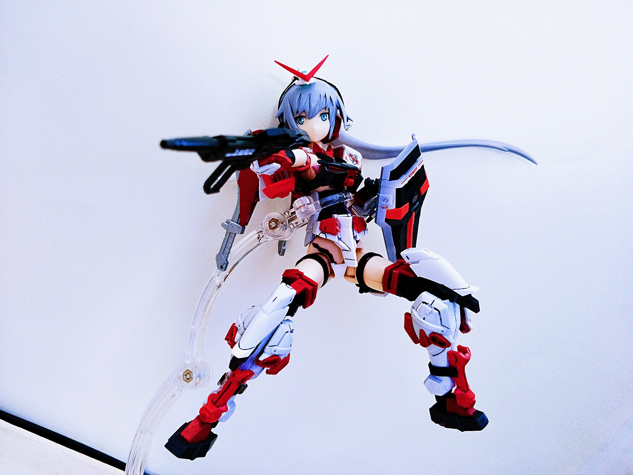 这次的是我第一次做杂交娘。。而且还是代工,买家要求:可拆装甲,可还原素体 所以在连接方面改动了一些,外甲全部是在迅雷本体上加的,rg红异端的优秀分件帮了不少忙呢~