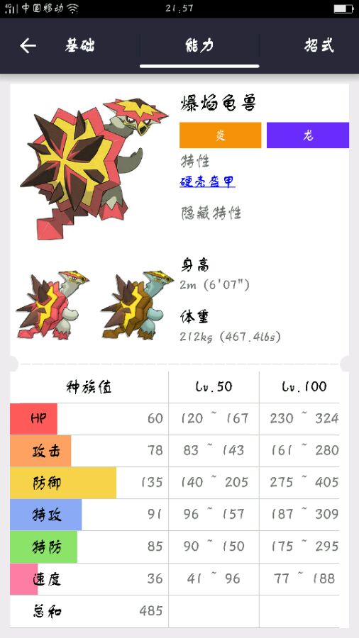 火+龙,爆焰龟兽也是第七世代新加入的,跟老翁龙一样,速度值低得很,不过有着不错的物防
