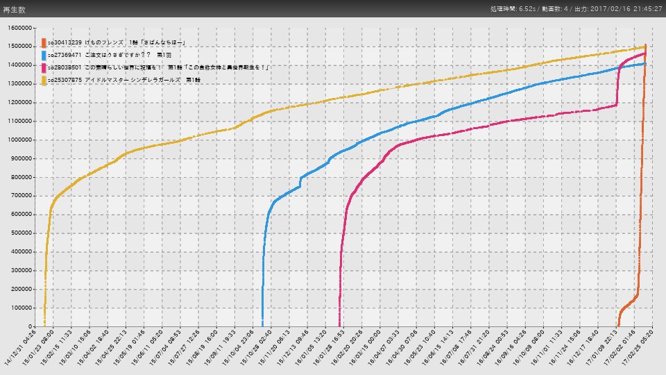 从左到右分别是偶像大师灰姑娘、点兔第二季、素晴第一季、兽娘?都是第一集的数据?