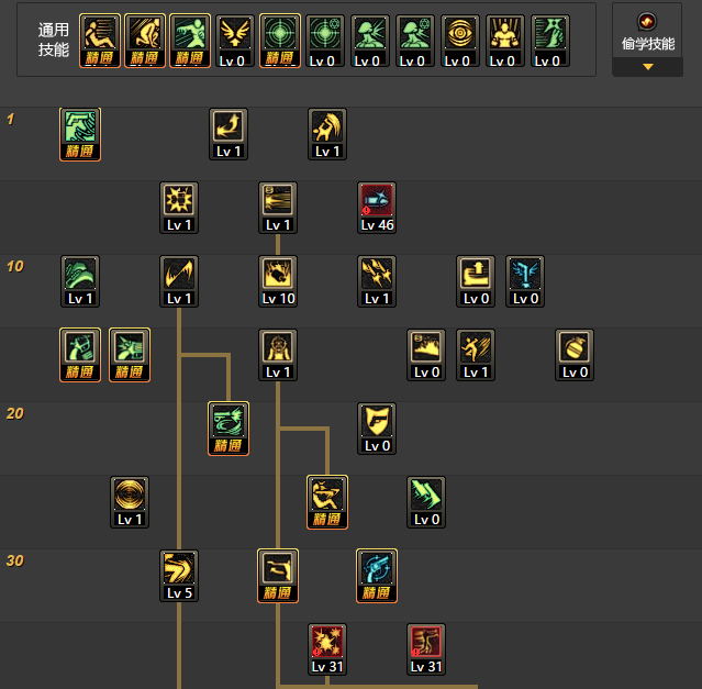 这个阶段依旧发挥着极大的作用。故完全舍弃了移动射击(移动射击无法作为柔化的起始技能,所以点1也没必要),强化了小技能上旋踢以及锁链截击,点满了快速拔枪增加了平射速度。在TP方面,移动射击空出来的TP