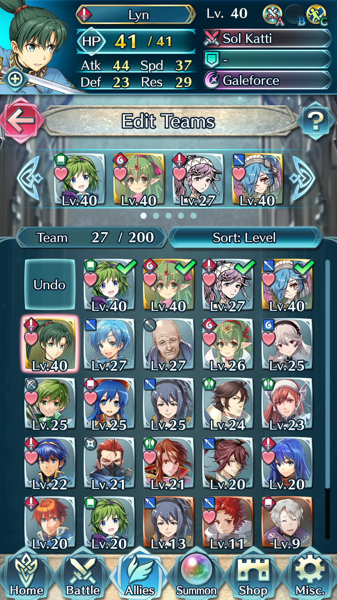 这是我打竞技场用的阵容。我感觉如果不是加速琳的话在竞技场里真不好用,而且也容易被秒。