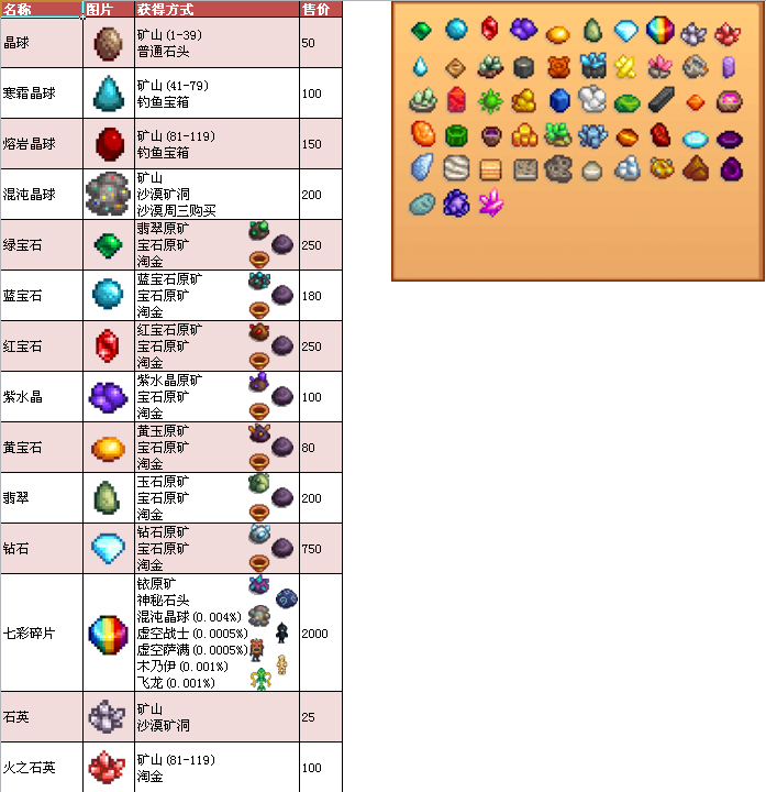 3、“钓鱼”“矿产”“考古”“烹饪”表格顺序均按照游戏里图鉴顺序排列。