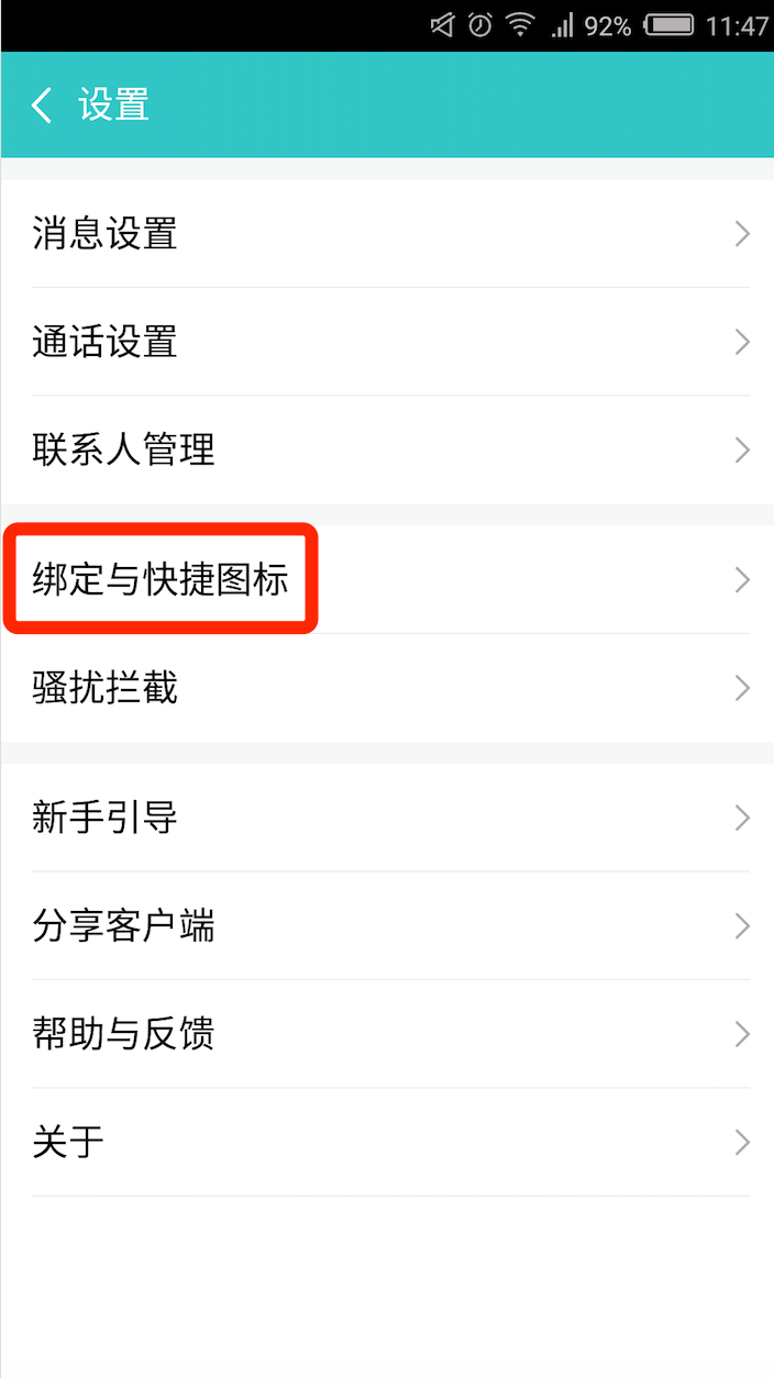 1.和飞信客户端-我-设置-绑定与快捷图标