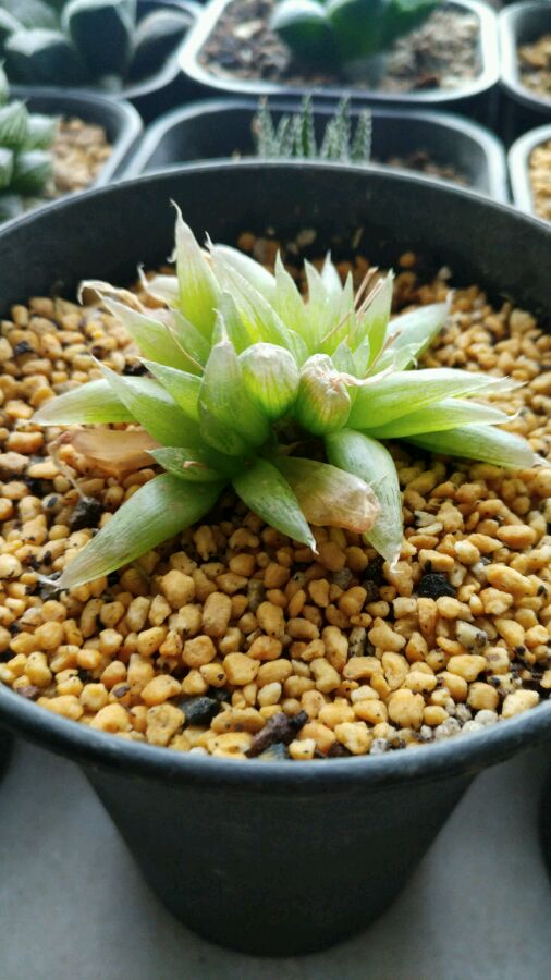 佛座箍天冷时根出了问题,根茎切了坐土上重新发根。几个月好不容易发了新根。今天忽然发现新根把植株顶翻了,就拿出来在土上挖个坑。想正式栽土里,结果手一重……咯嘣