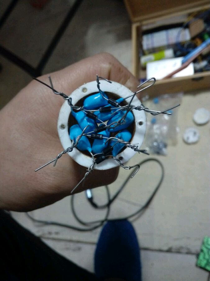 3节18650动力电池供电,ZVS模块升压至450伏,再通过7倍压整流输出3KV,电弧有点小,看着不吓人,有没有什么办法让电弧更大,声音更响,求高手指教!