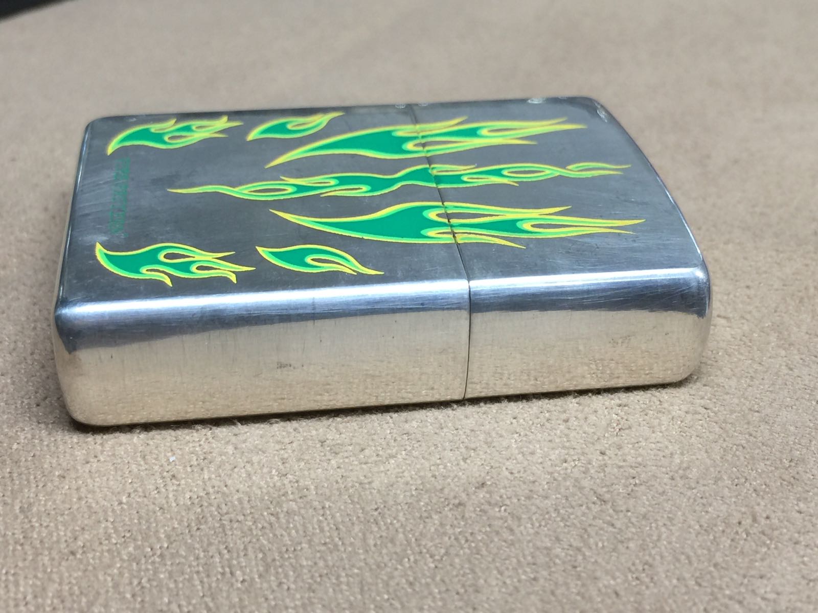 【具体描述】全新2000年2月 双底刻镀银机,蚀刻填漆工艺 绿火。该机未使用,机身运输不当,较多毛细擦丝,擦痕,底部一角氧化,定义近新品。原配全新00H内胆,黑纸盒包装。