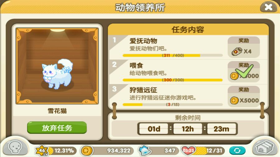 【0223◇任务】雪花猫任务? 狩猎远征15次! 怎么办?多少钱?
