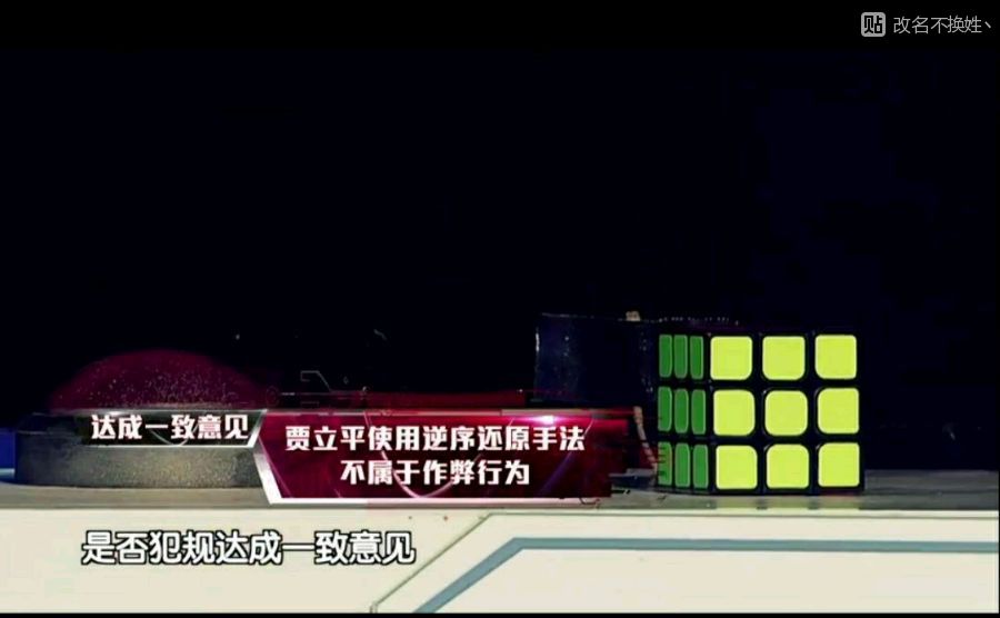 节目组明确表示逆序还原≠盲拧还原 然后达成一致意见jlp在听音盲拧项目中(注意:这个项目是盲拧)使用逆向还原不属于作弊