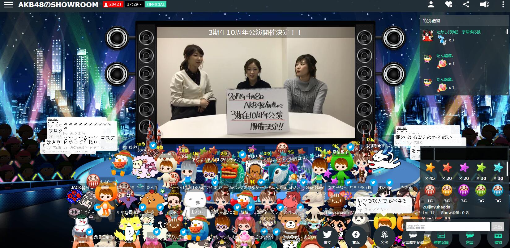 今天下午5:30三期生showroom,不知道会有什么关于三期生10周年的活动,大家期待一下吧