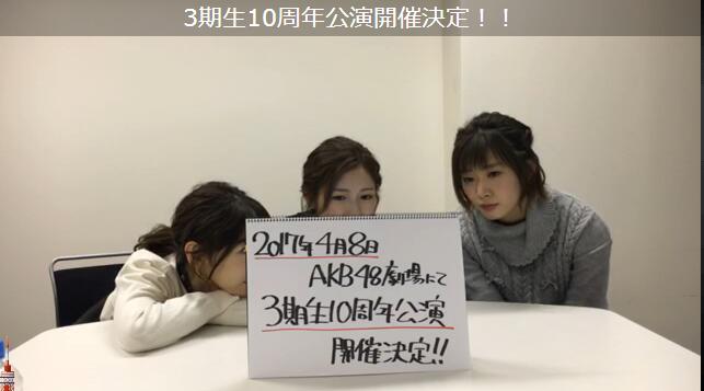 2017年4月8日,3期生10周年公演开催决定