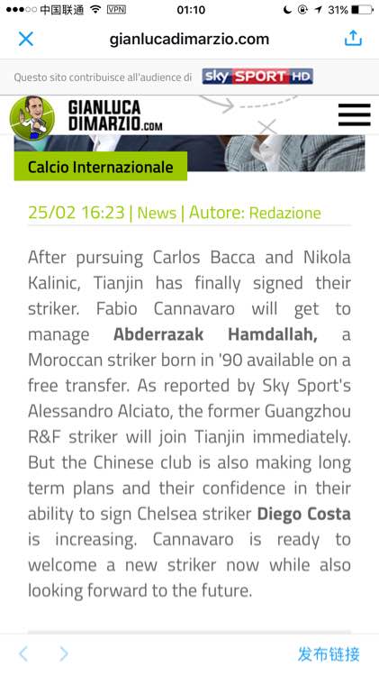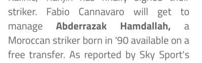 翻译 卡纳瓦罗将会成为哈默德的主教练, 哈默德是一名90后摩洛哥球员 ,自由转会获得。