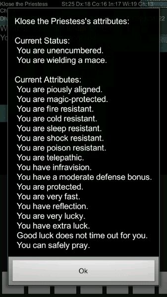 这一局应该说运气很好,初期就出了两个神灯,第一个果断要了灰龙甲,第二个留了很久,之后在商店里试出了力量手套和速度鞋,直到出现夺心魔,我还没鉴定出灭绝卷轴,于是就许愿了三张,不过只给了一张,灭绝h。一路杀到城堡,虽然目前已经和猛犸、蓝龙、黄龙玩过近战,不过minotaur还是挺恐怖的(目前挨一下损失一半的hp吧),虽然在迷宫里依靠sleep之后近身杀死过他,不过我还是想找到spellbook of extra healing之后再去屠城,或者试试刷到14级了先去完成职业任务。