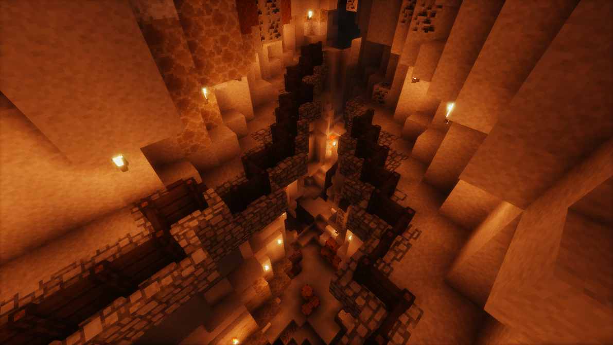 最底层有霍比特人在峡谷中修的栈道 还有矿物的开采地点