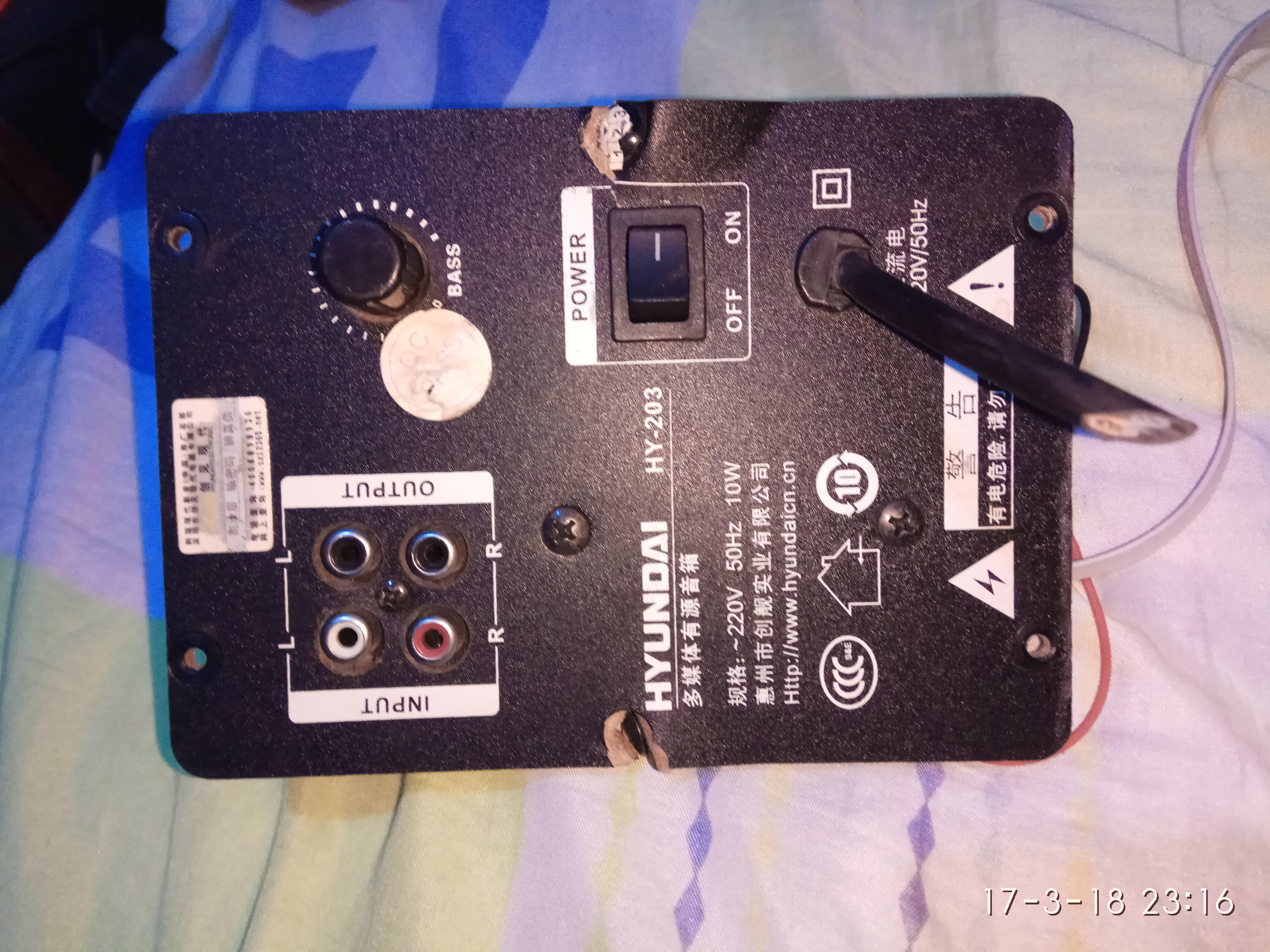 嘿嘿今天又捡一个,这个是现代的,我怀疑别人是不是怒砸韩国产品哦,不过好像是惠州产的,由于是在捡垃圾那里要的,还有一个音量开关没有了,还没有试过是不是好多,不过感觉跟上次的ic是一样的