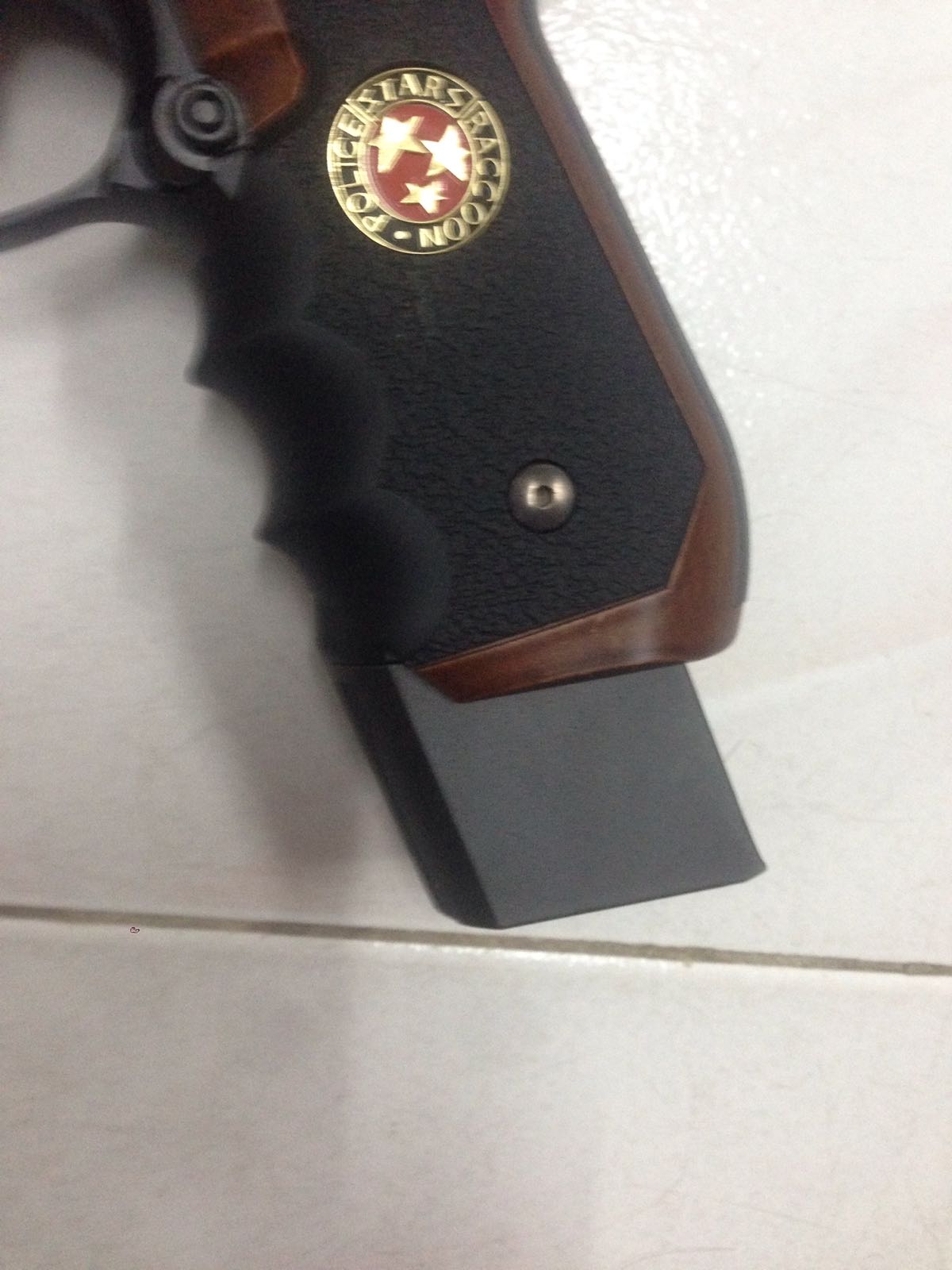 确实手感 很好。 有分量.但外壳并不是金属. 握把内册有铁片. 把弹家拿掉看的到