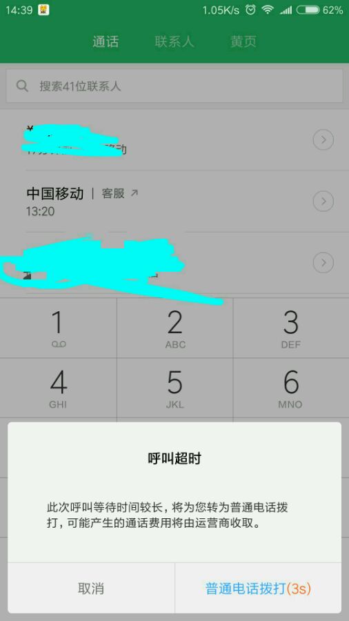 我用电话加油包一直打不通,显示如图,手机是米4