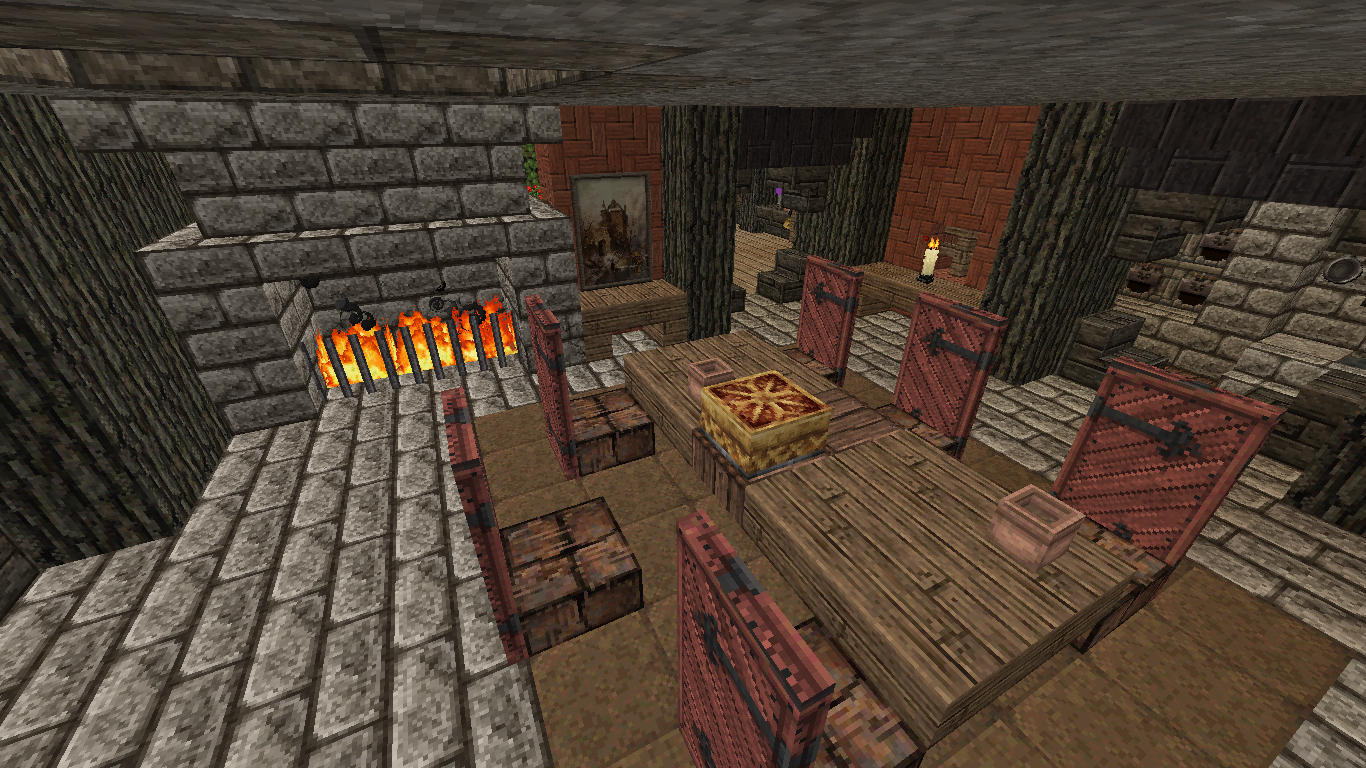 霍比特人好客,喜欢将朋友邀请回家聚餐。所以进门就是带有壁炉和长餐桌的客厅。