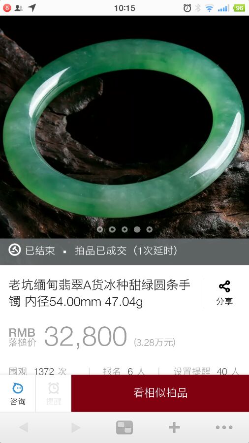 图很仙,就是不知道实物差距有多大,3w2可不便宜,但感觉对这样的种水色来说还算捡漏了,哎哎,就是好想看实物!!拍卖围观好几年了,就是不敢下手