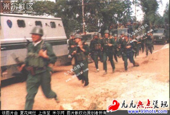 回顾当年照片和视频,可以发现大部分参战武警穿的都是单一武警绿的制服,常服和作训服兼有。那个年代TG还处在常作分离不久的阶段,分开使用的习惯还不强。士兵的常服布料跟作训服差不多,易皱但是柔软方便,裁剪也宽大,穿着运动完全没问题。