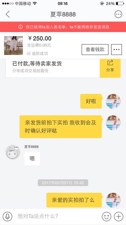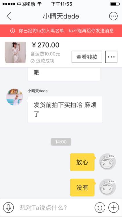 这个人恶意退款