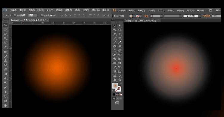 ai和ps为啥同背景同渐变出现的效果不一样?