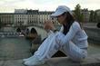 头发模糊的力度再大点 这样发丝加上去会跟原图融合的好点 如果人物是往暖色调就不要放冷色的背景了