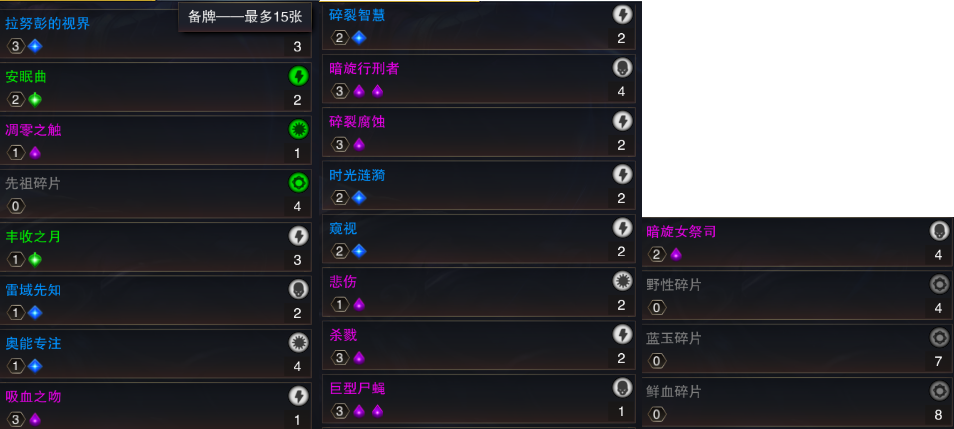首先说明一下,因为我没有专门带终结手段,所以这个卡组的取胜方式是苟活劝退,或者靠卡差消耗取胜,一般比赛会比较漫长。卡组