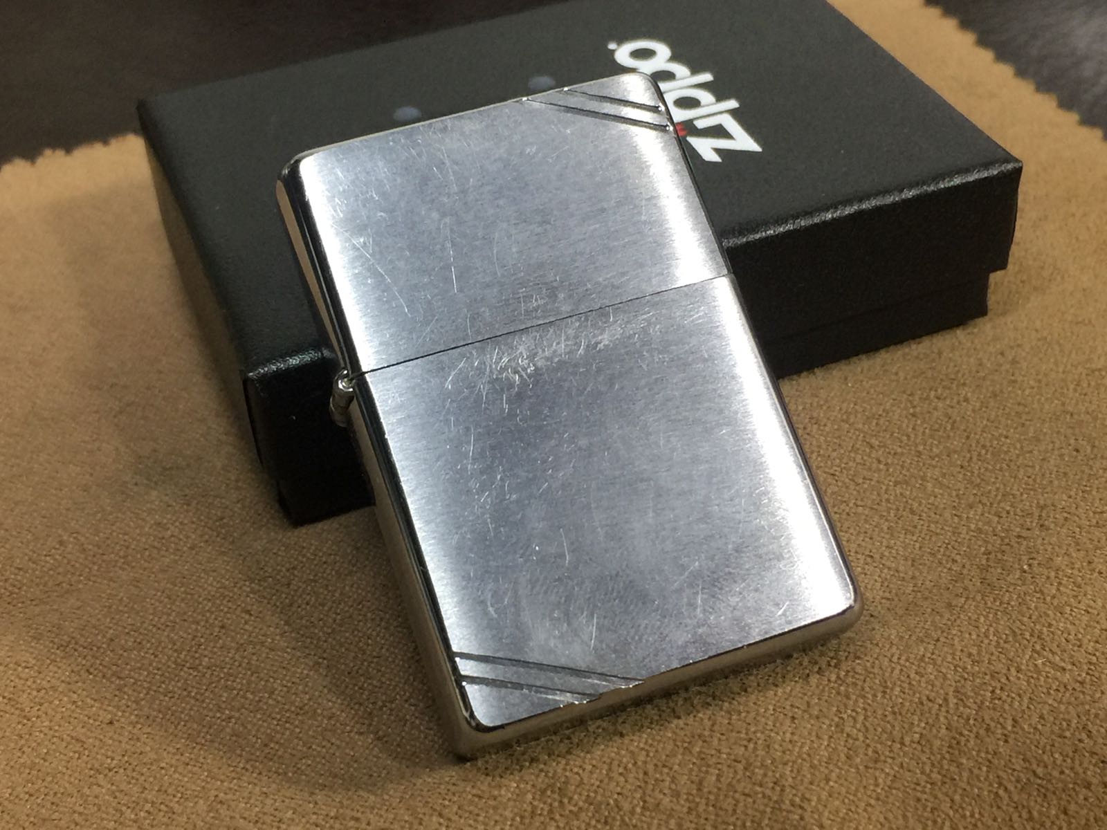 【具体描述】二手1998年4月 37复刻拉丝光板。机身正常使用擦丝擦痕,边角有麻点和小磕,无大伤,定义差品。铰链正常,原配98J内胆打火强,无包装。