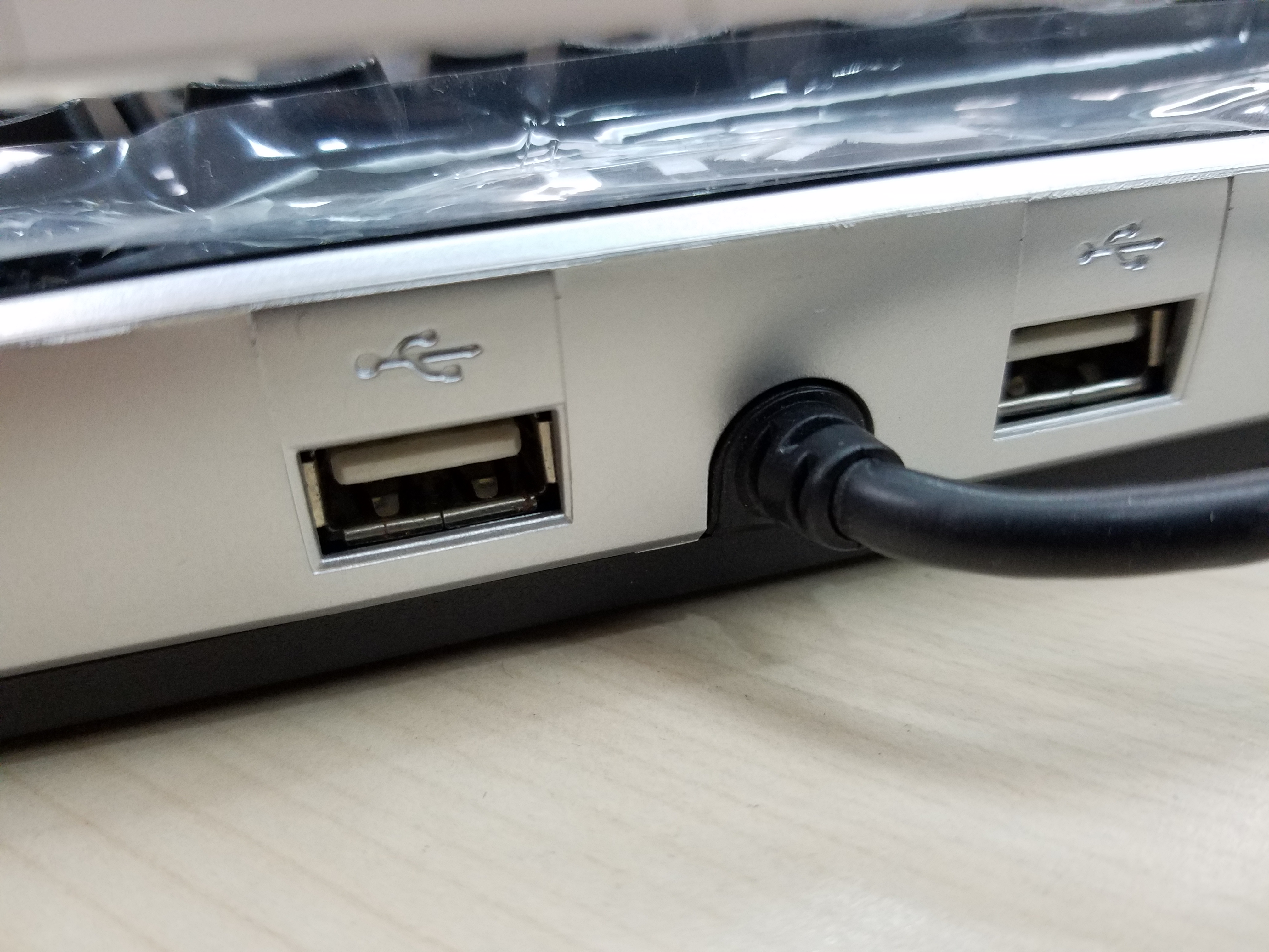 DELL logo上方连线出自带两个USB接口的HUB,