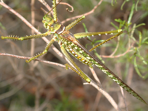 国内介绍斑点猎螽(Chlorobalius leucoviridis)的帖子里几乎都有提到“本种分两个形态,短翼型和长翼型,其中短翅体型相对较硕壮。”
