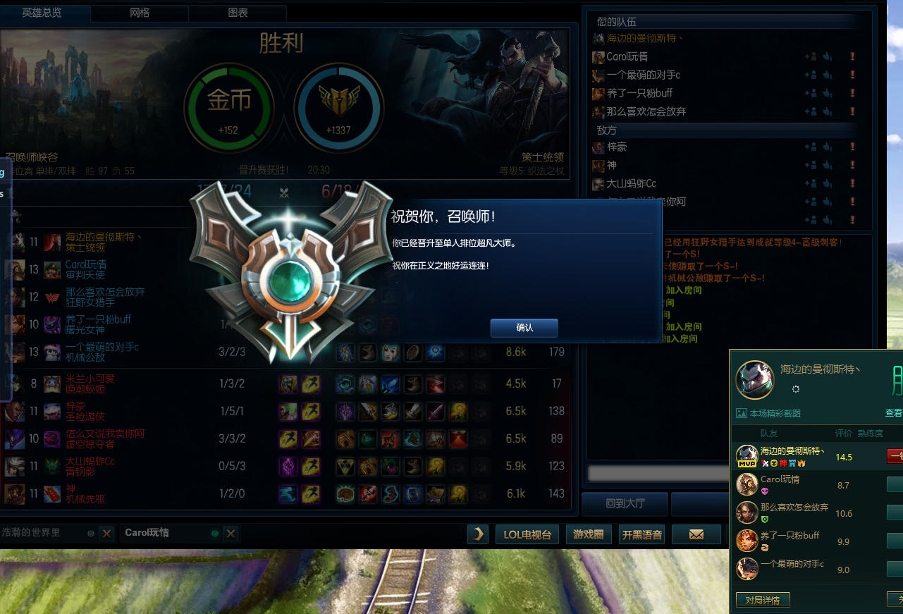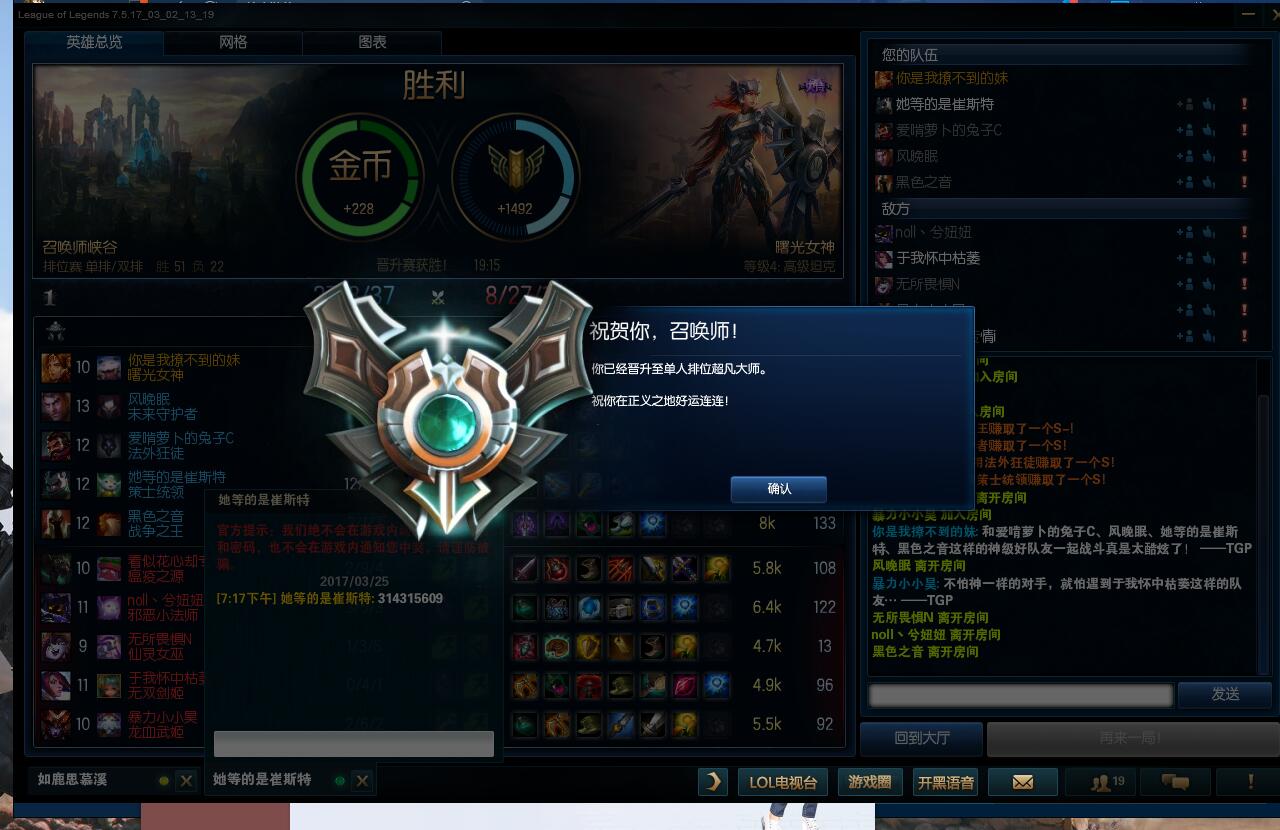2017年3月24日21:21:05 本来能十胜 2个吵架挂机了 新号定级赛