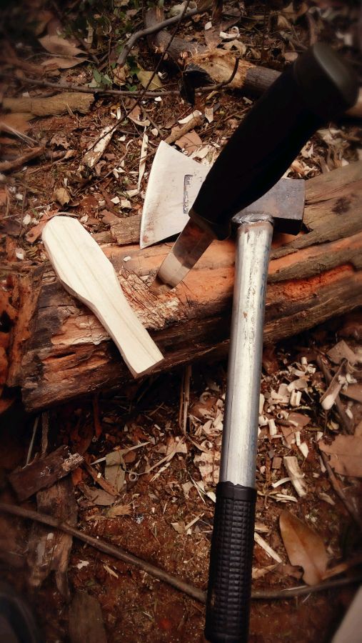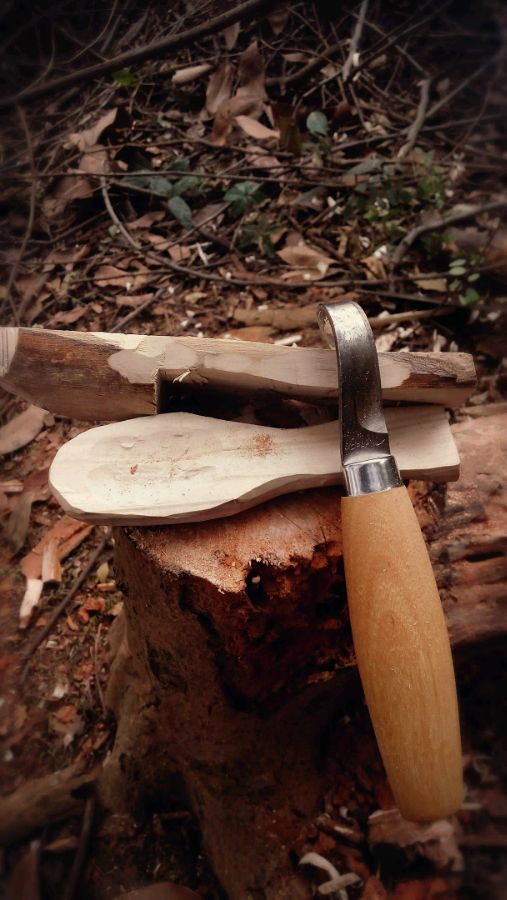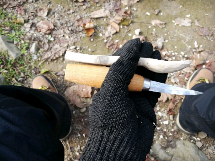 很早之前,从家里后院锯了几截橘子木,放干之后,选了一截破两半,开始了漫长的挖勺过程。