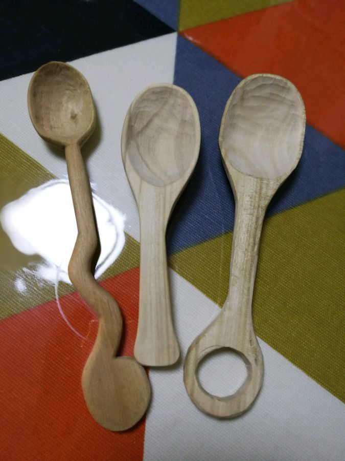 第一个勺子没啥价值,松木的,就懒得磨了。
