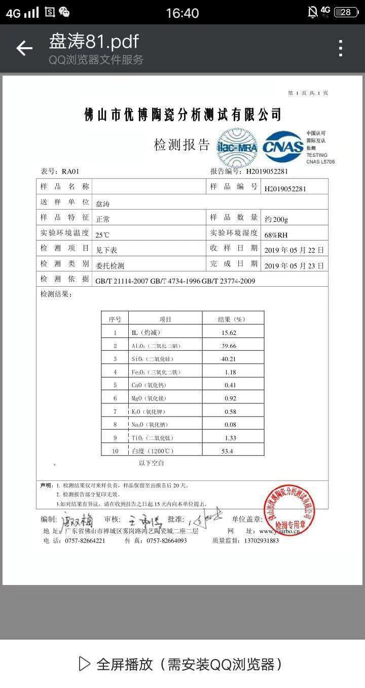 白泥:三氧化二铝36.20度/三氧化二铁1.90度。