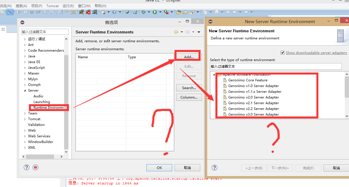 services里面就是tomcat那个选项 如图 什么都有了 就是new service的时候 没有 apca tomcat之类的选项 全部G开头的 ,在 首选项里面 点击ADD也是一样