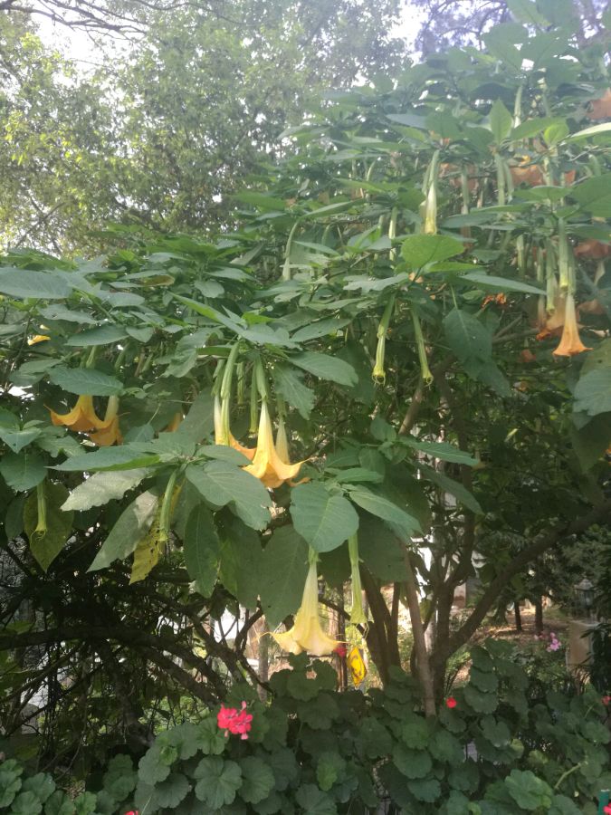 二、木本曼陀罗,花有多种颜色。种子有毒。