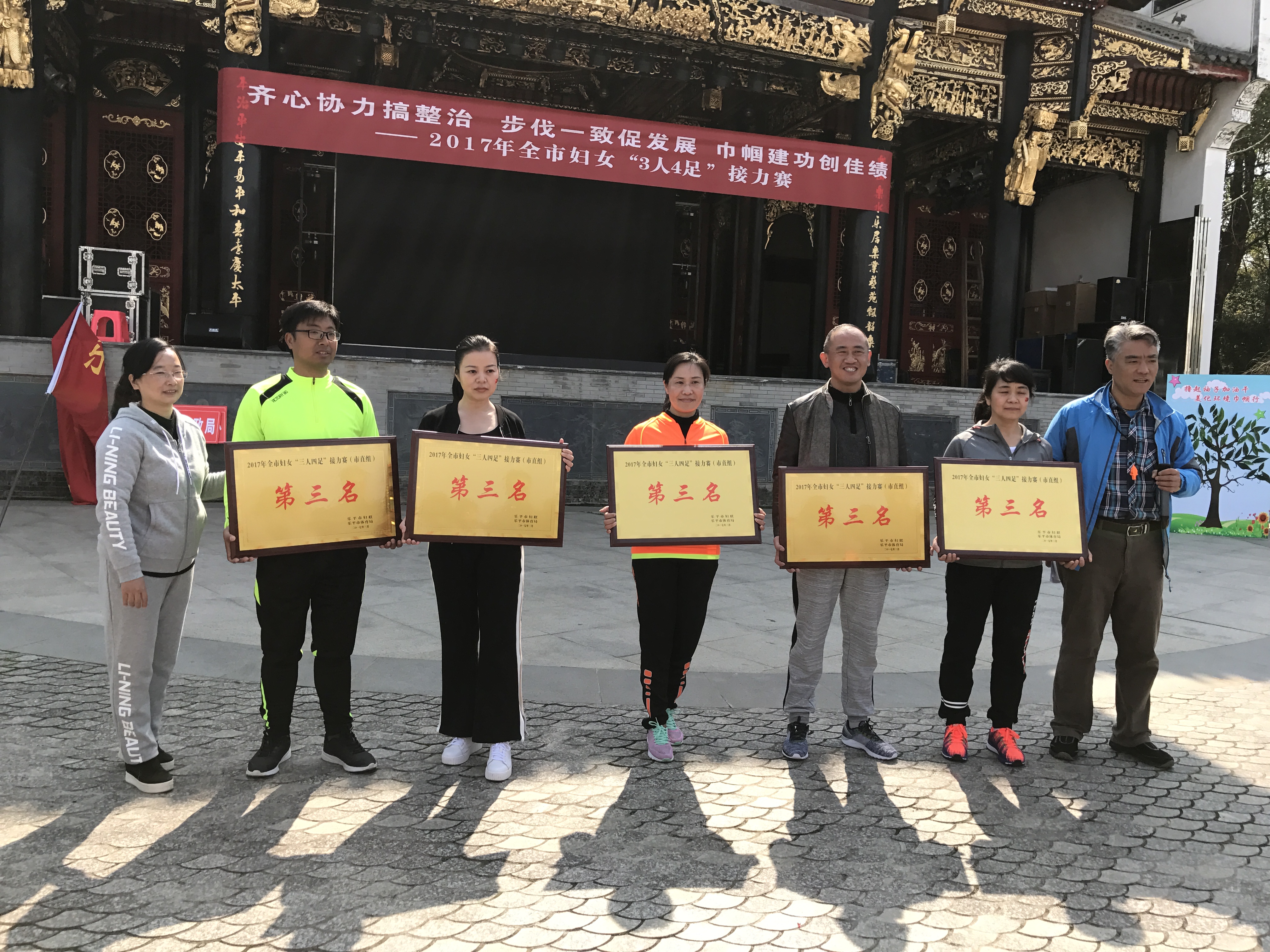 为展示我校女性风采,3月9日,我校组织了14名教师参加乐平市妇联、乐平市体育局举行的2017年全市妇女“三人四足”接力赛(市直组)。