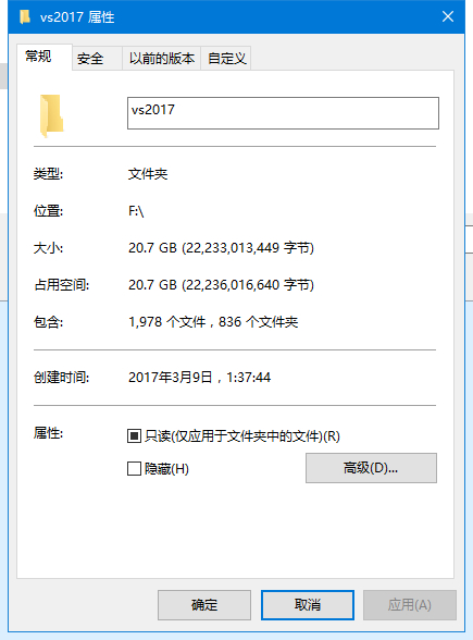 用这个命令,执行完毕,最终得到的vs2017大小如图