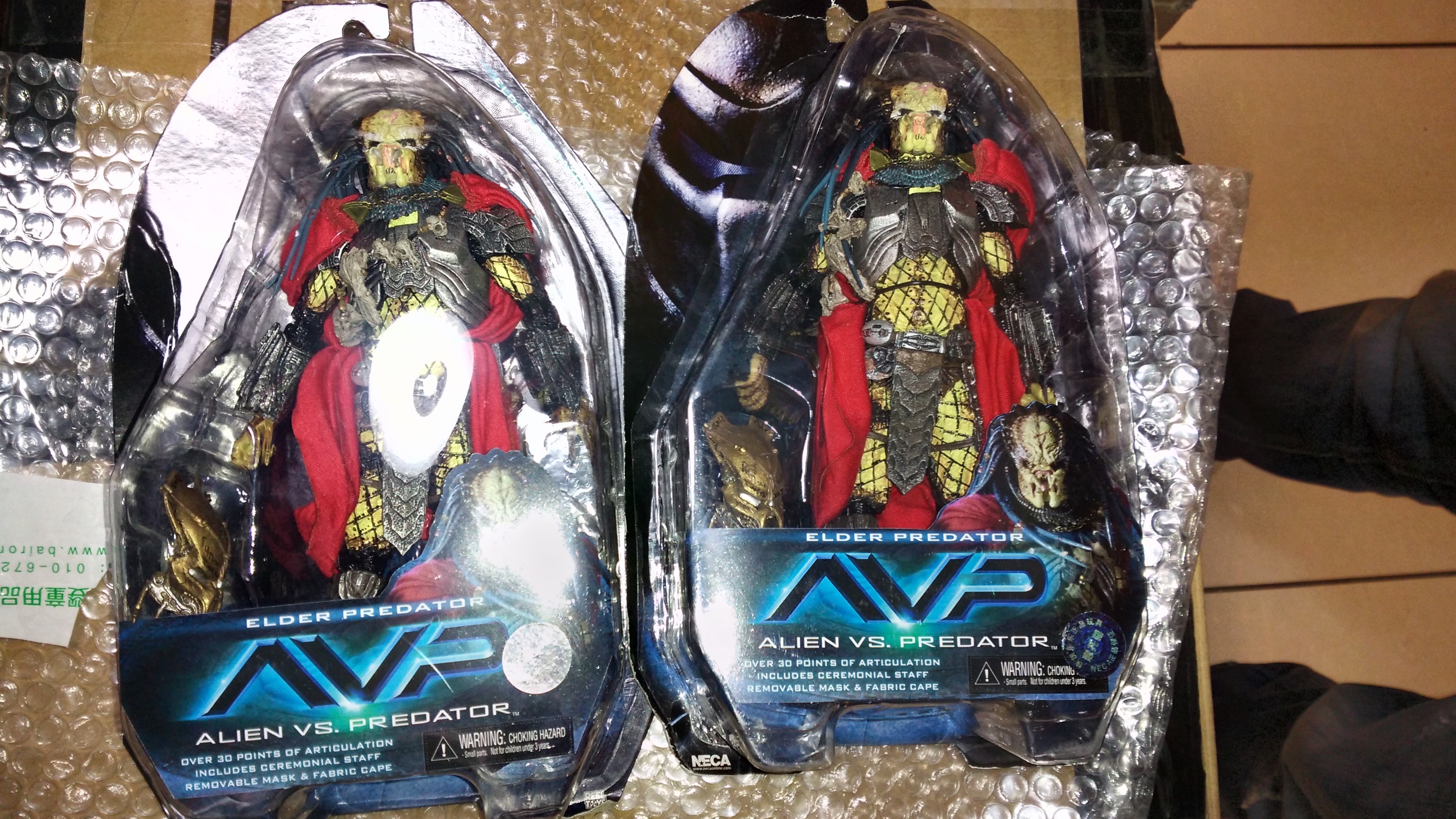 3.两套里面有3盒背板清晰(长老1盒,异形头2盒),3盒背板模糊(长老1盒,蛇皮2盒)