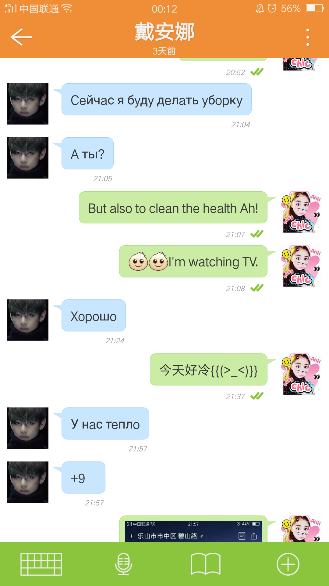 谦虚,我看你们聊天记录好多俄语,我觉得你可能用俄语和她视频聊的,哈哈