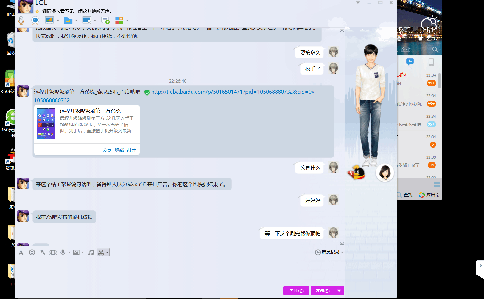 前段时间给在美国读大学的吧友过指导和支持,也是有聊天记录的;今晚的这个吧友也是会有出国旅行的打算,远程刷机,也是刷的心情和交流,我本来脾气和耐心就好,远程刷机后,吧友愿意来支持我,也很正常的。