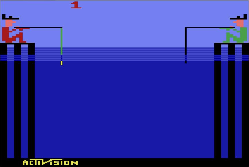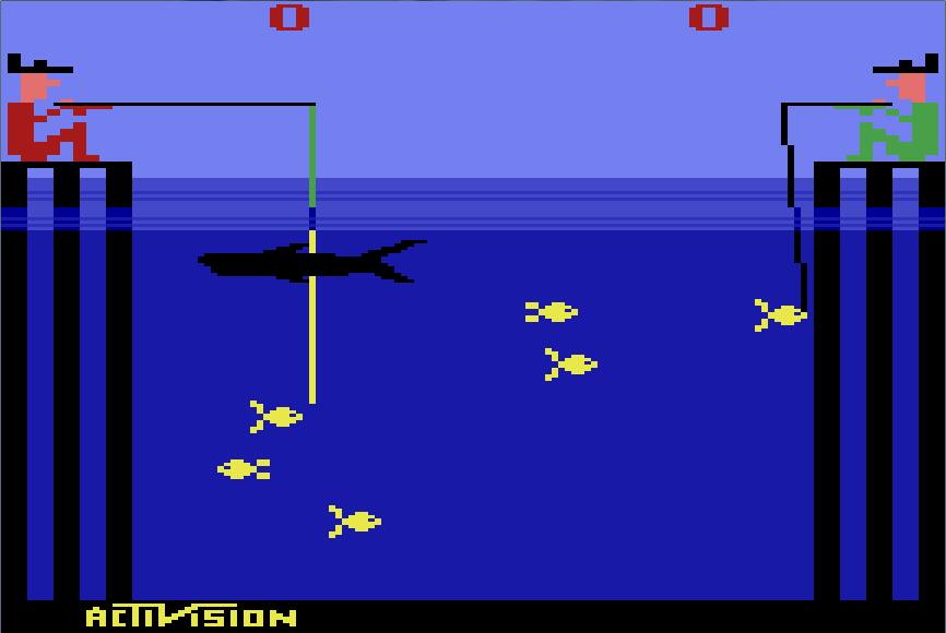 这游戏,2P比较容易得高分,因为放线到底,正好钓到5分的鱼。