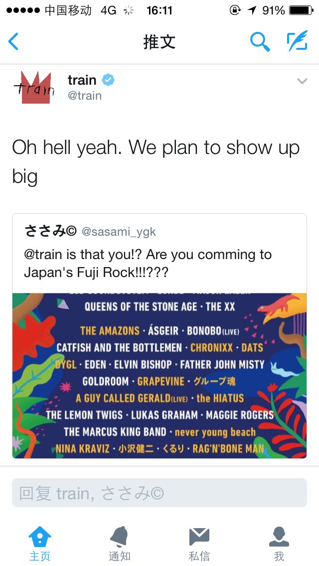【Train】Train7月底会参加日本富士摇滚音乐节